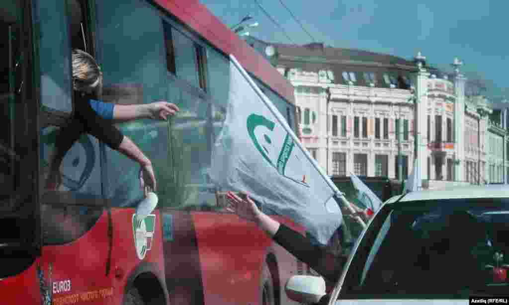 Апрельнең 25ндә Казанда татар телен яклап апрель аенда үткәрелүче чаралар кысаларында "Мин татарча сөйләшәм" исемле машина йөреше узды. [Гөлназ Бәдретдин фотолары]